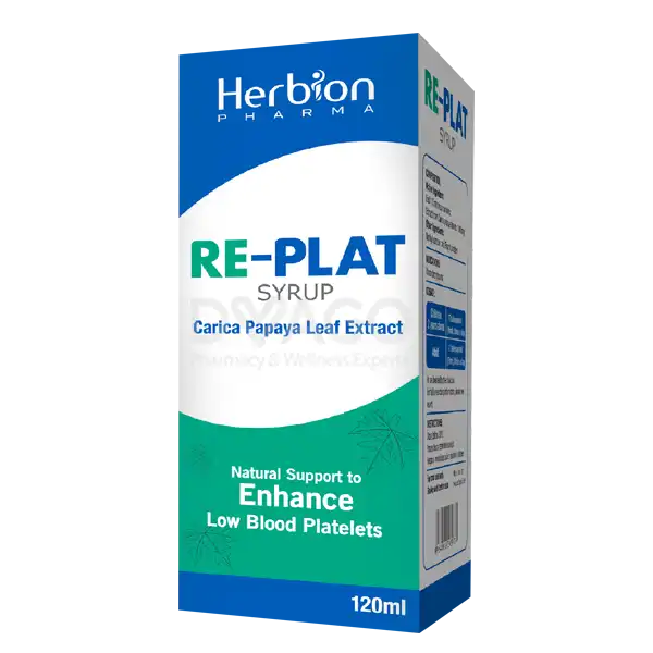 Description : Re-Plat is a unique formula containing Carica papaya leaf extract that acts as a tonic for the treatment of Thrombocytopenia as it substantially increases and normalizes blood platelet count and white blood cells count. Naturally Extracted Formula from Carica papaya leaf, remarkably increases the platelet count with-in 48 hours . Significantly accelerates the rate of increase in platelets count during Dengue Fever and Dengue Hemorrhagic Fever . Help to repair Lever cells damage, caused due to Dengue Fever . Strengthen immunity in immunocompromised condition.